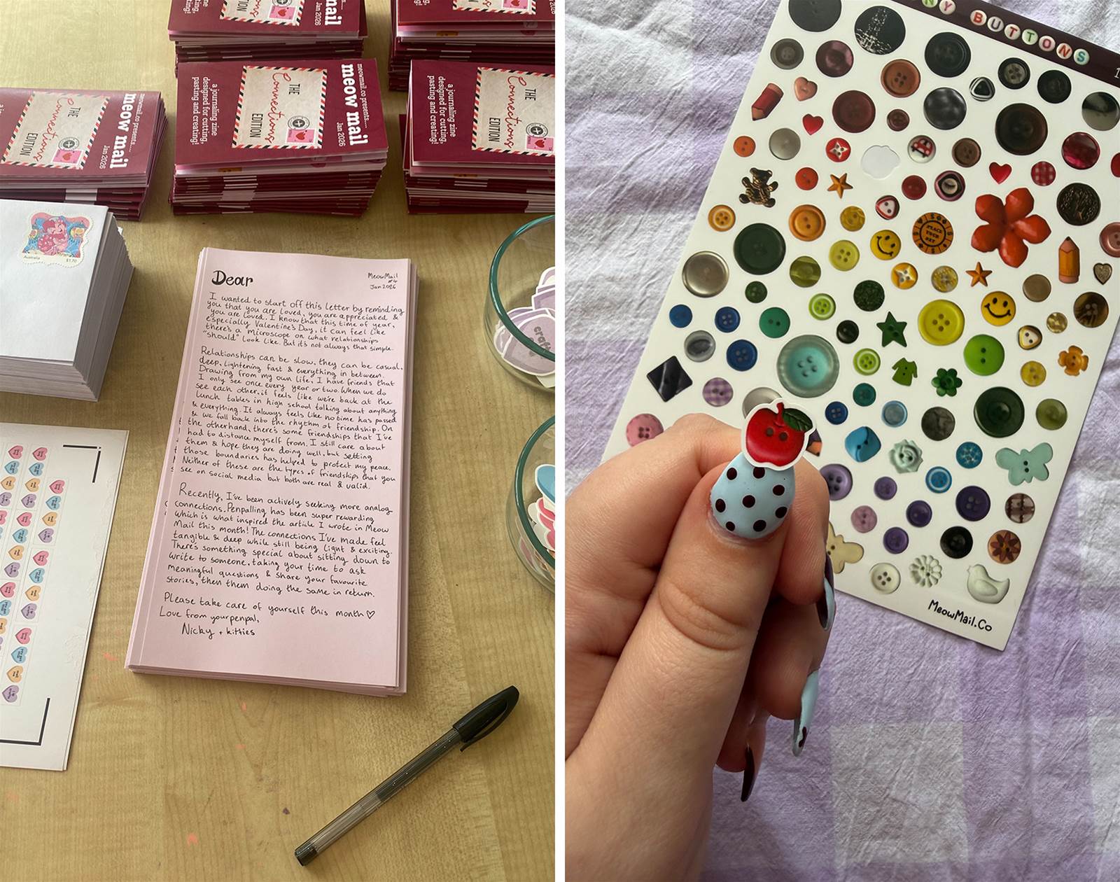 Tell us a bit about Meow Mail and how it got started. Meow Mail is a stationery brand I started in 2025. My main product is Meow Mail Club: a monthly junk journalling zine designed to be read, cut up, then used to craft. I also design and sell a lot of stickers!