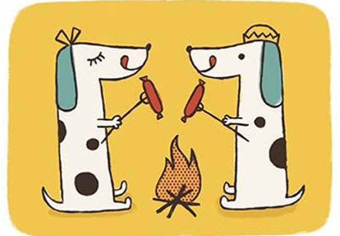 Hot dogs eating hot dogs does sound kinda cannibalistic, but with such jolly grins on their faces who are we to spoil the fun? Illustrators Sarah and Colin Walsh say that making things makes them happy, and that certainly comes across in their super smily art prints. Going by the name of Petit Reve, the duo's range includes cheerful candy clouds, merry sweatband sporting water droplets, happy face snow cones and friendly best buddies, Sushi and Wasabi. On roller skates, of course. Because that's how all delicious seaweed-wrapped snacks get around.