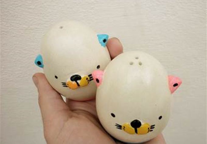 Coffee is so much more satisfying in the morning when it is drunk out of a tiny porcelain critter by Miriam Brugmann. Their little cross-eyed, multi-hued faces make us smile every time we come across them (which says a lot when we're pre-caffeinated). Plus, they're super cheap! You can see Miriam's full range of ceramic goodness here, and be sure to have a peep at the matching salt and pepper shaker ranges.