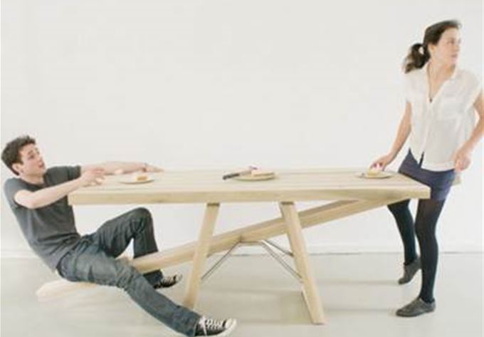 How do you prevent people leaving the table before dinner is over? Dutch designer Marleen Jansen thinks she has the solution: construct a see-saw under the table top and let gravity take its course. We can see a problem here, though. If one rude person gets up before the end of the meal, it's the other person who ends up on their arse. Slightly unfair, but that's life.