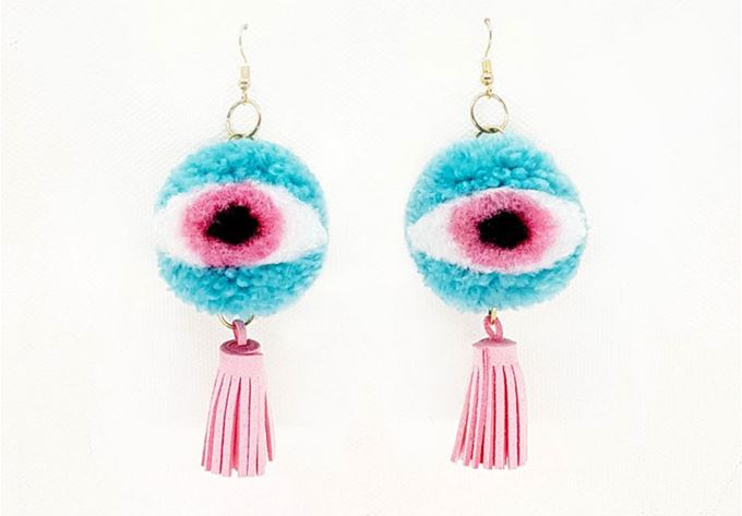 We can only imagine how wild Irenne Tj’s studio must look. The Melbourne maker behind Haboo Design specialises in funky pom pom earrings, most of which resemble monster eyeballs. We'd like to picture Irenne calmly making her earrings, tangled in a sea of hyper-coloured yarns with Monsters Inc blasting on the TV behind her.
