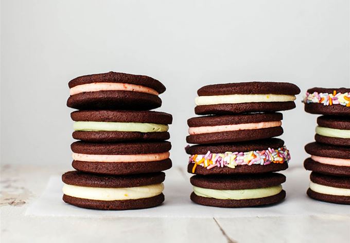 Making gourmet versions of popular snacks has really taken off lately (thank Bon Appetit’s Claire Saffitz and the now infamous homemade McDonalds group), but Molly from the food blog My Name is Yeh got in on the action a few years early with her recipe for ‘springtime Oreos’.